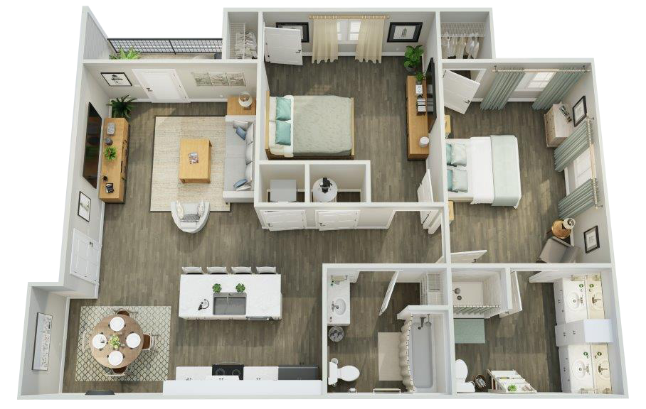 Atlantic Breeze offers 2 bedroom, 2 bathroom floor plans to fit your lifestyle. Each floor plan comes with essential amenities like stainless steel appliances, oversized kitchen islands, keyless entry, and so much more.